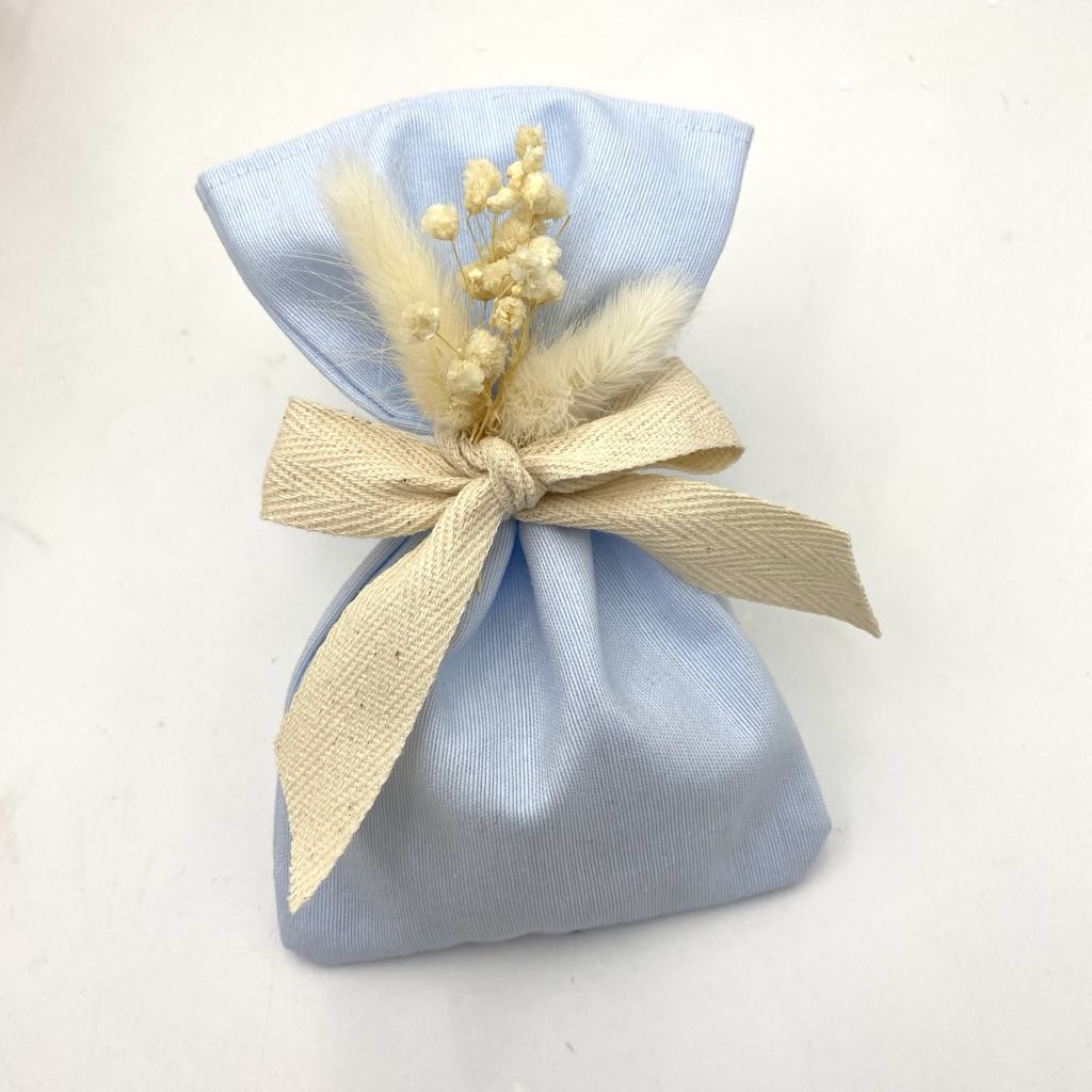 Μπομπονιέρα βάπτισης boho πουγκάκι με αποξηραμένα λουλούδια