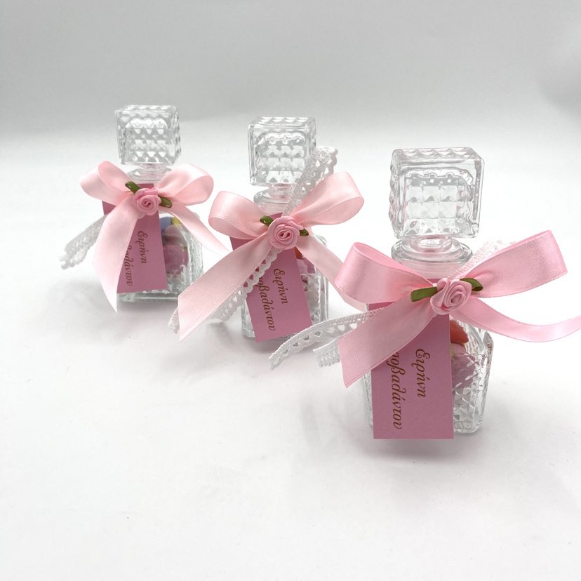 Μπομπονιέρες βάπτισης καραφάκι με λουλούδι