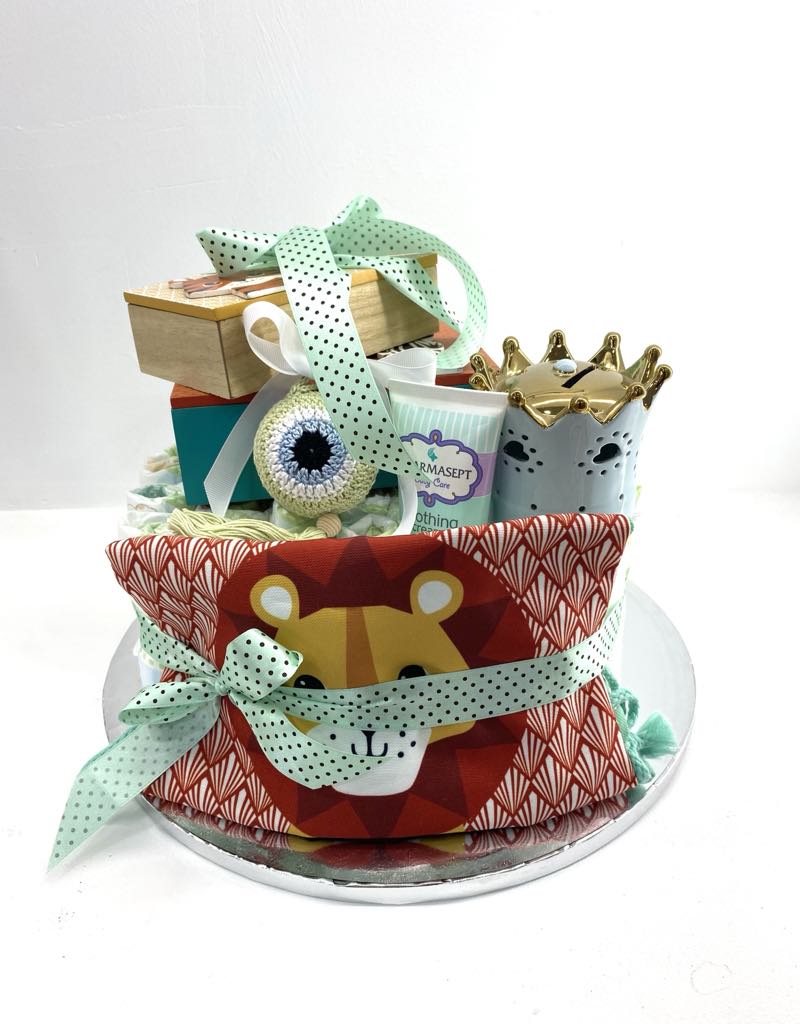 Διώροφη τουρτοπάνα "Λιονταράκι" για νεογέννητο αγοράκι XL