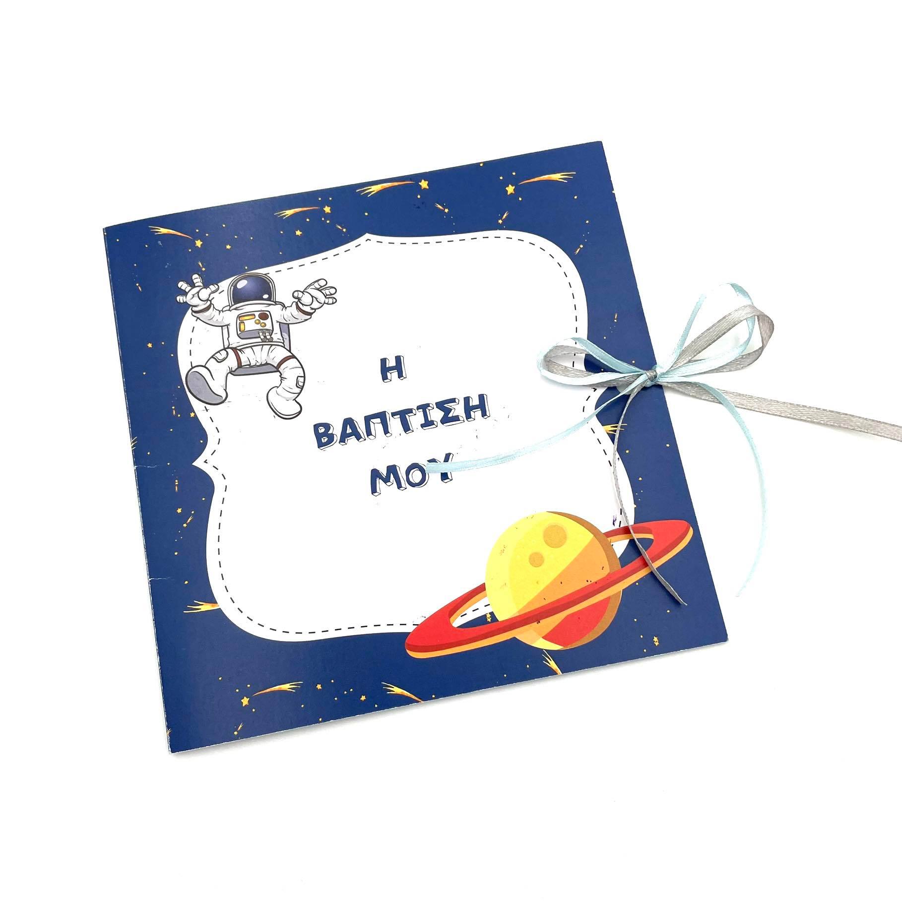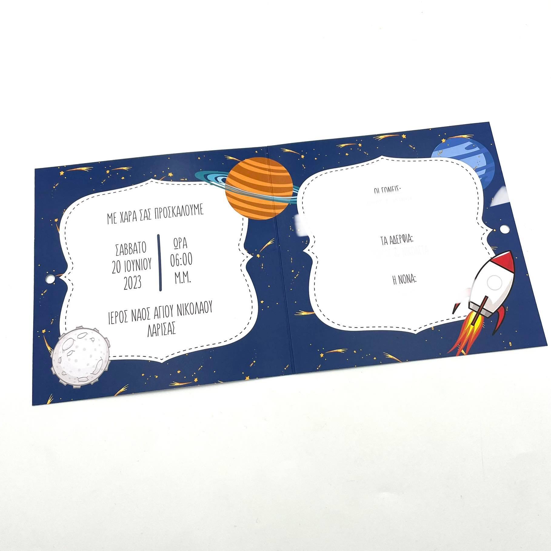 Προσκλητήριο βάπτισης δίπτυχο με το διάστημα