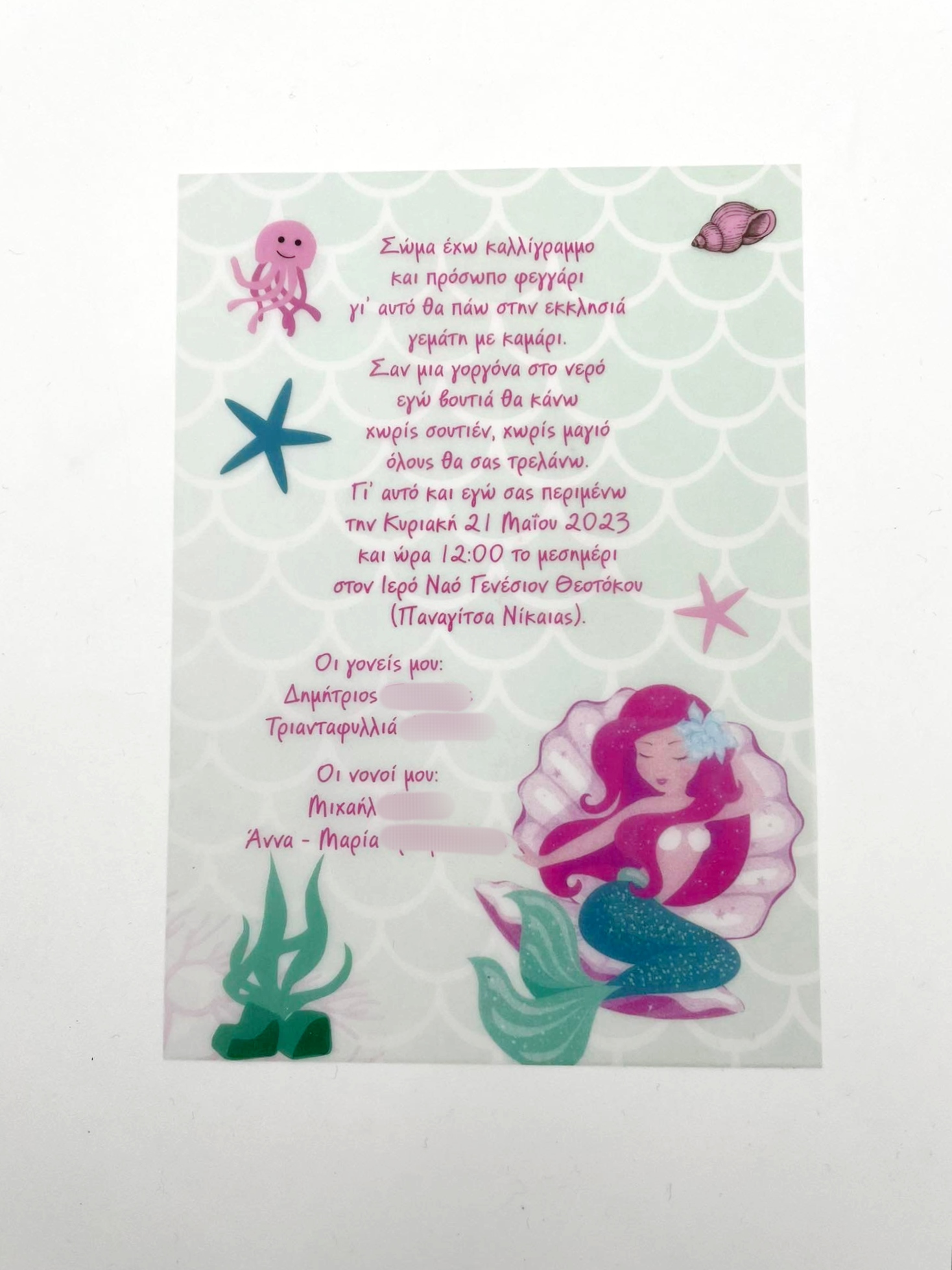 Προσκλητήριο βάπτισης πάπυρος με γοργόνα