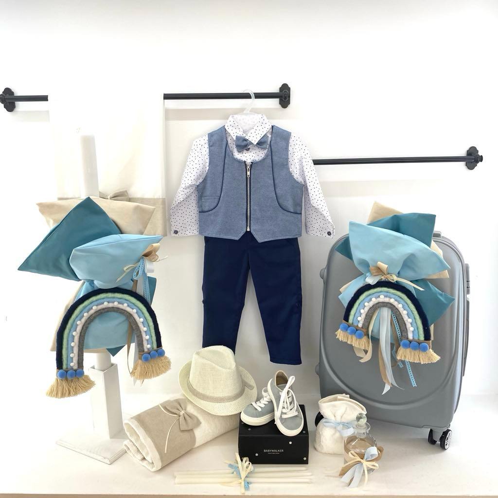 Σετ βάπτισης για αγόρι με βαπτιστικά ρούχα και παπούτσια.